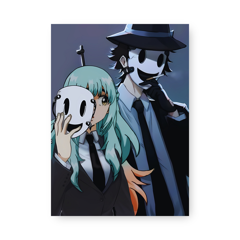 Quadro Decorativo – Casal Mascaras Sorridentes Ternos