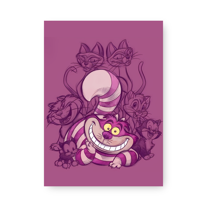 Quadro Decorativo – Cheshire Cat Sorrindo Com Gatos