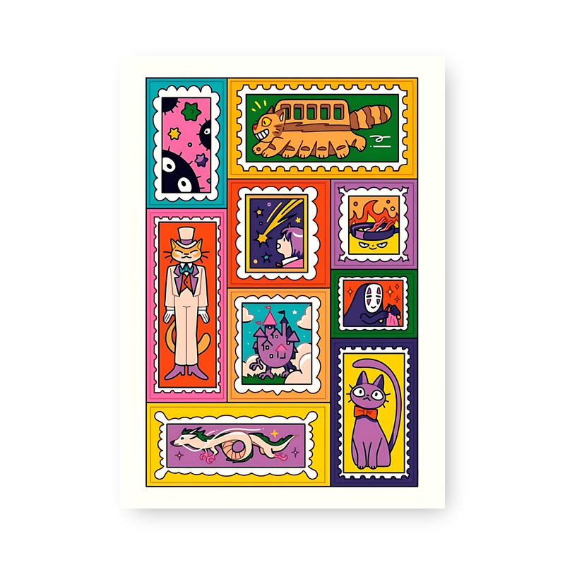 Quadro Decorativo – Gatos Selo Colorido Studio Ghibli