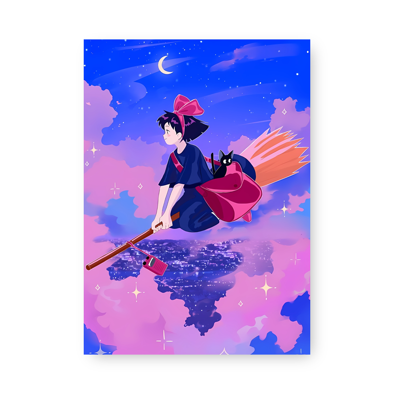 Quadro Decorativo – Kiki Voando Vassoura Gato