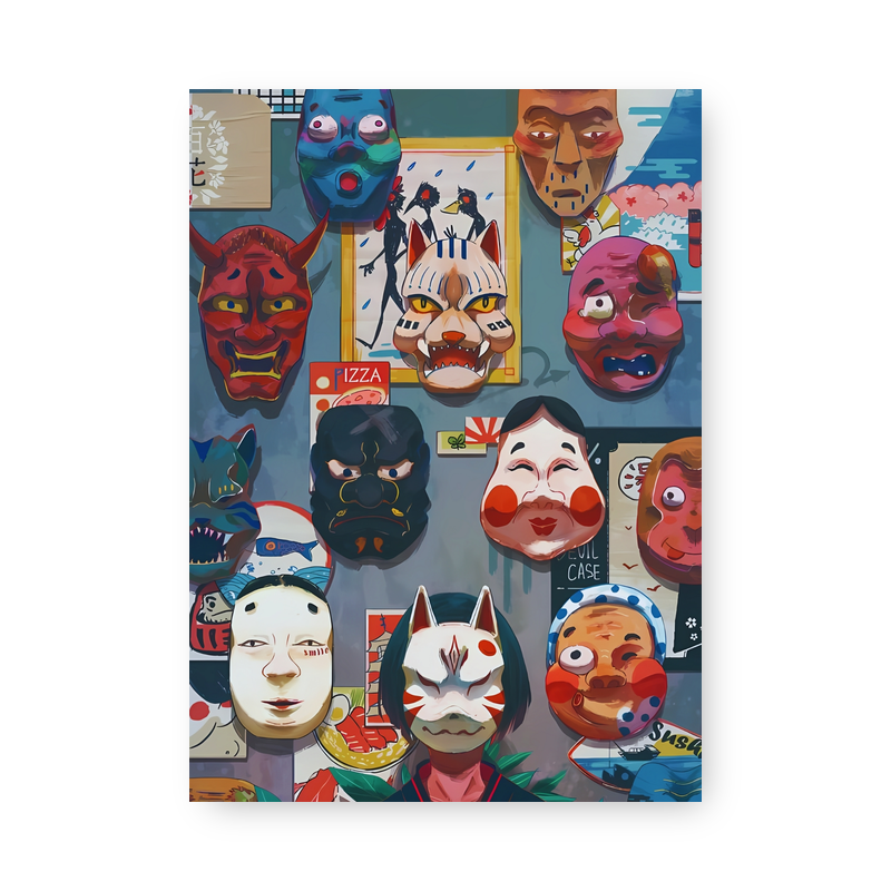 Quadro Decorativo – Mascaras Japonesas Coloridas Parede