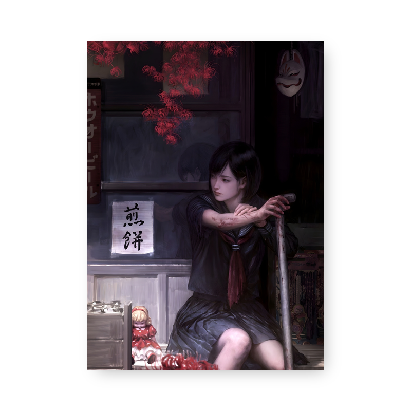 Quadro Decorativo – Jovem Reflexiva Mascara Kimono