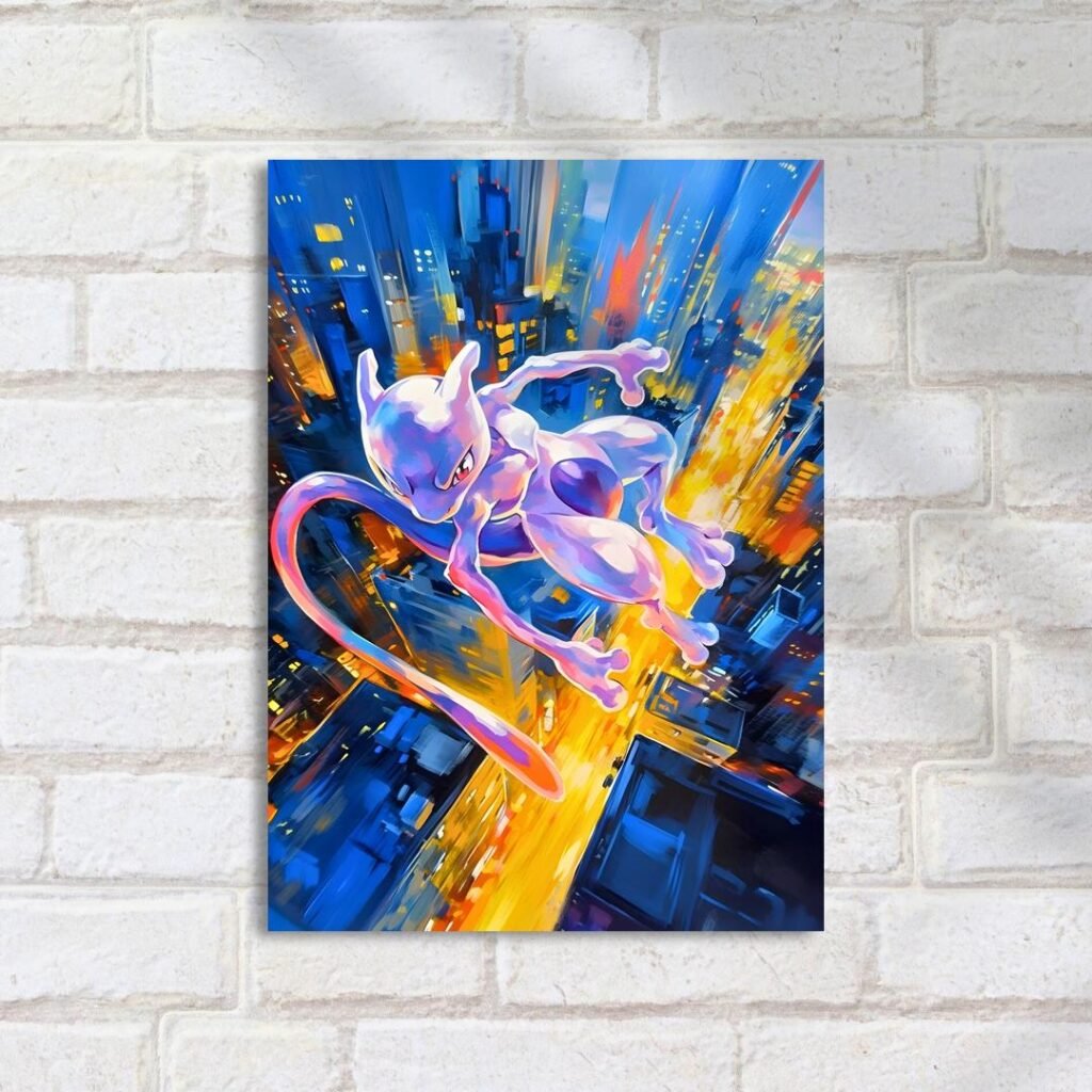 Quadro Decorativo Mewtwo Cidade Voo Noturno