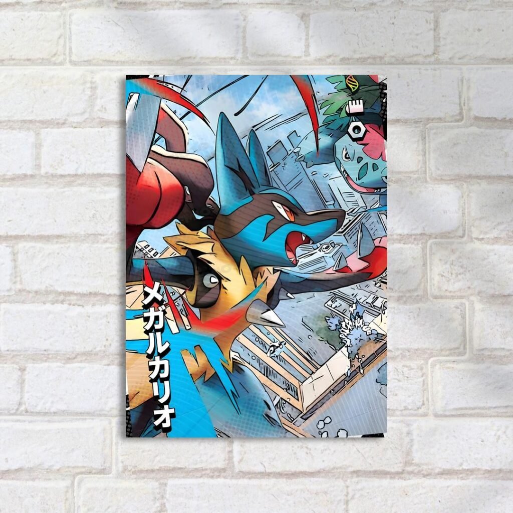 Quadro Decorativo Mega Lucario Batalha Cidade