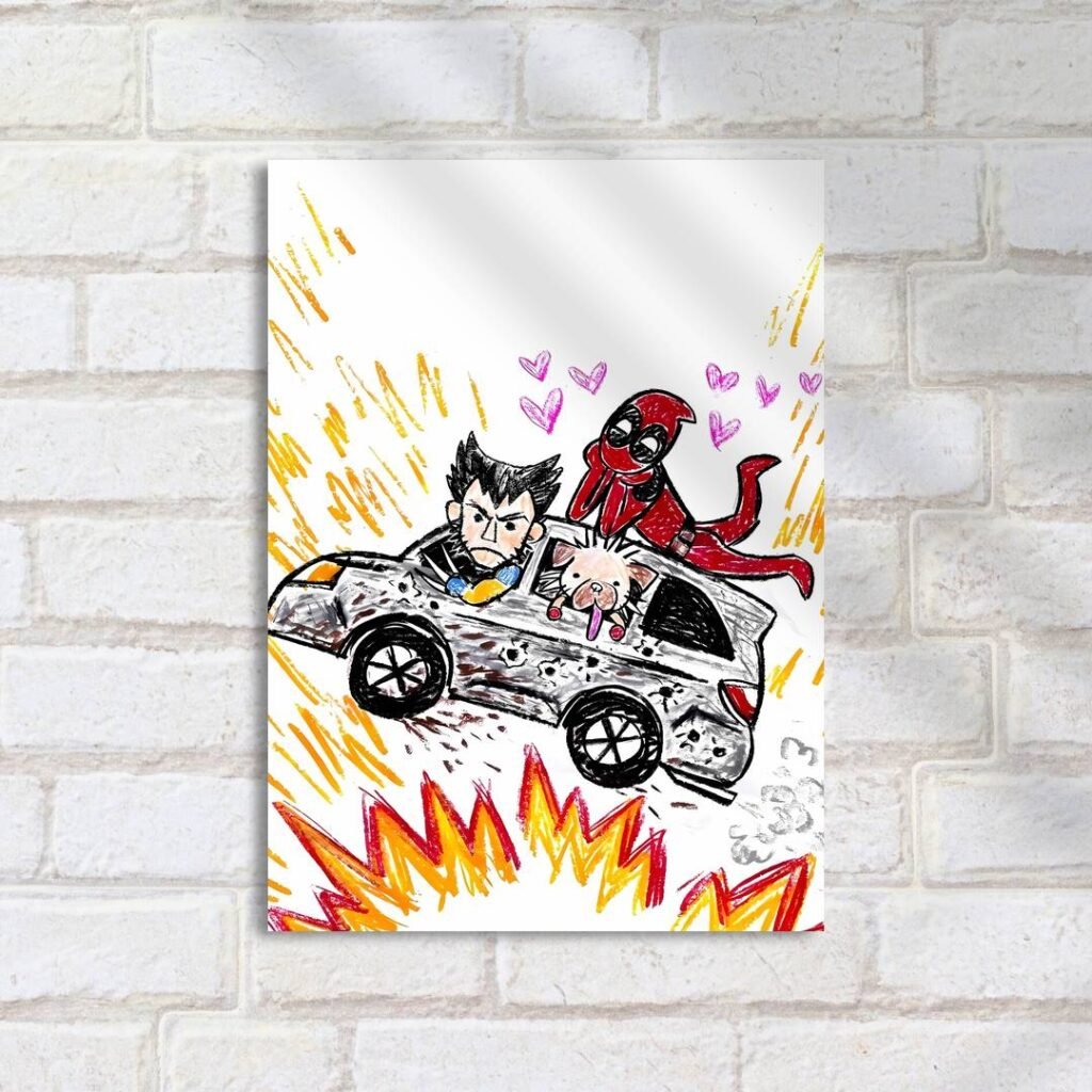 Quadro Decorativo Wolverine Deadpool Carro Explosao