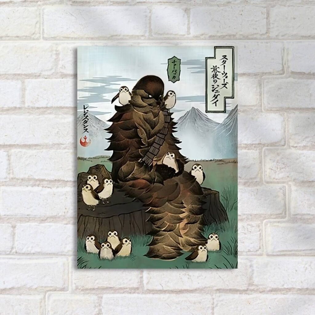 Quadro Decorativo Wookiee Porgs Montanha Arvore