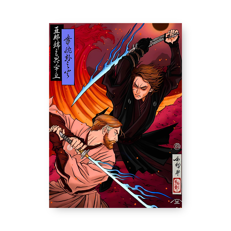 Quadro Decorativo – Star Wars Desenho Samurais Duelo Azul