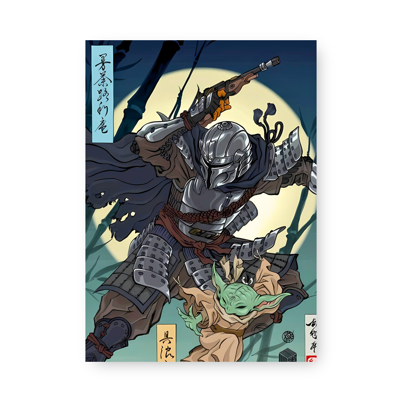 Quadro Decorativo – Star Wars Mandaloriano Grogu Samurai Lua