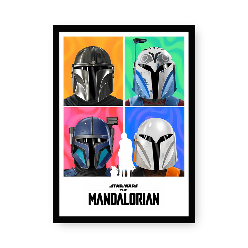 Quadro Decorativo – Star Wars Mandalorian Capacetes Coloridos