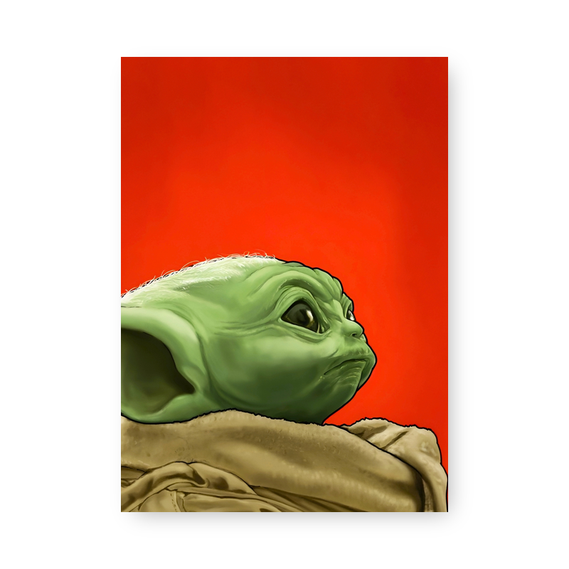 Quadro Decorativo – Star Wars Grogu Fundo Vermelho Perfil