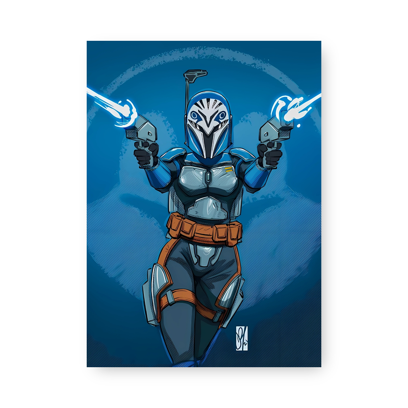 Quadro Decorativo – Star Wars Mandaloriana Armadura Pistolas Azul
