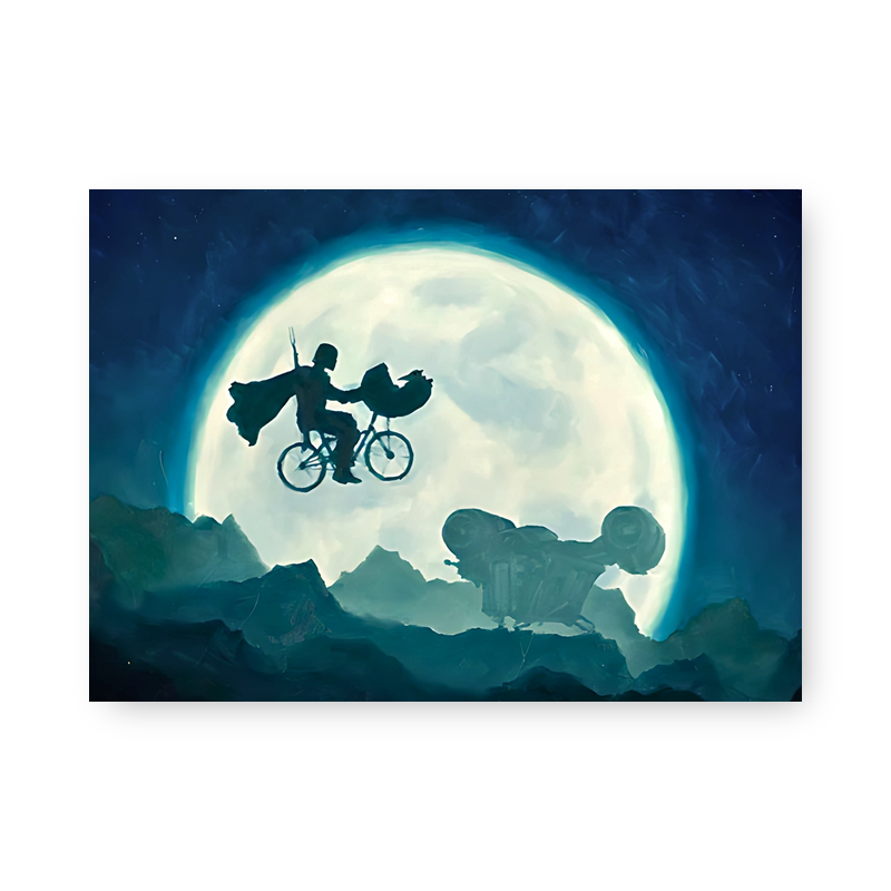 Quadro Decorativo – Star Wars Mandaloriano Voando Bicicleta Lua