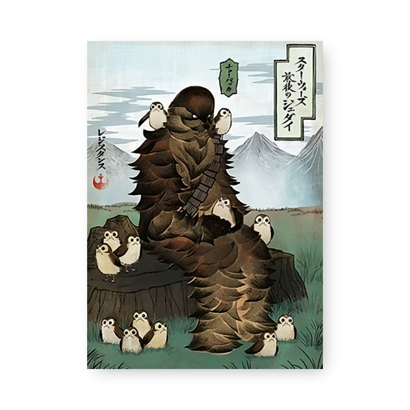 Quadro Decorativo – Star Wars Wookiee Porgs Montanha Arvore
