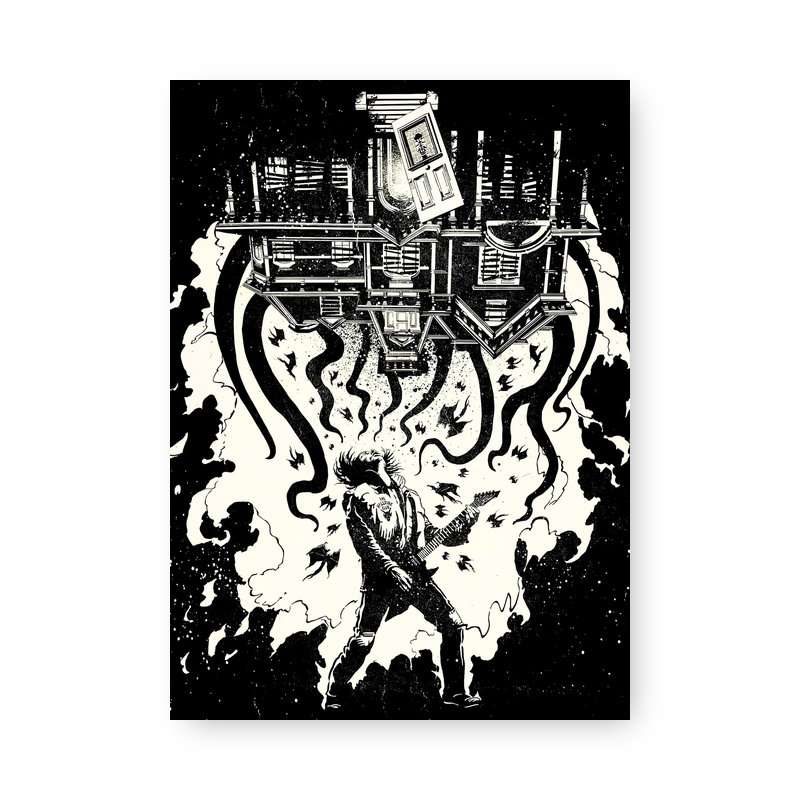 Quadro Decorativo – Stranger Things Rockeiro Guitarra Casa Invertida