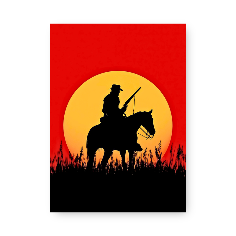 Quadro Decorativo – Cowboy Cavalo Por Do Sol