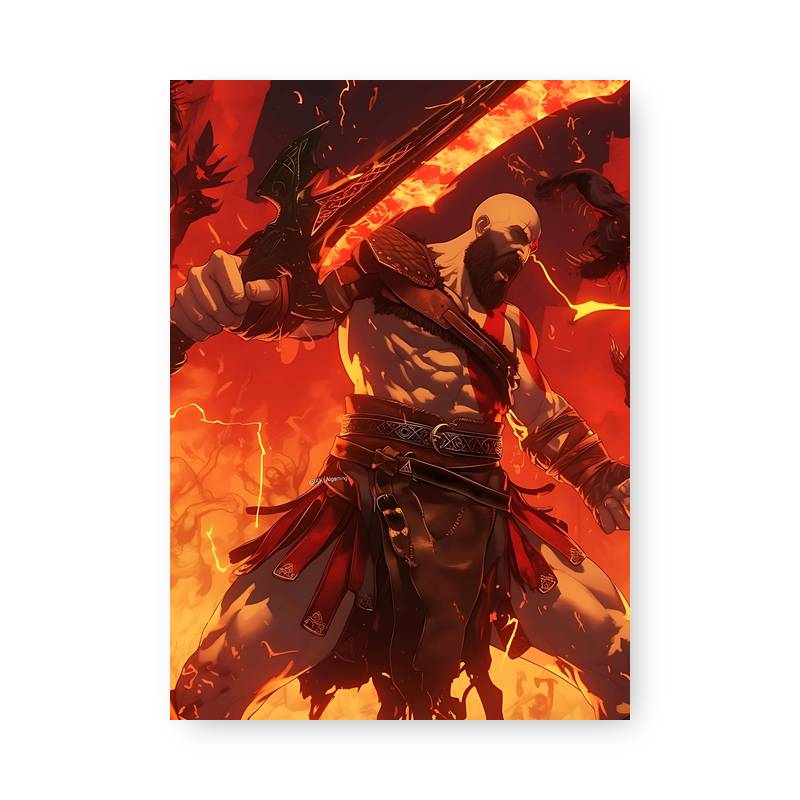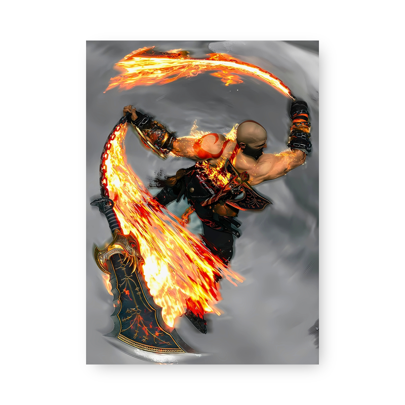 Quadro Decorativo – Kratos Espada Fogo Batalha