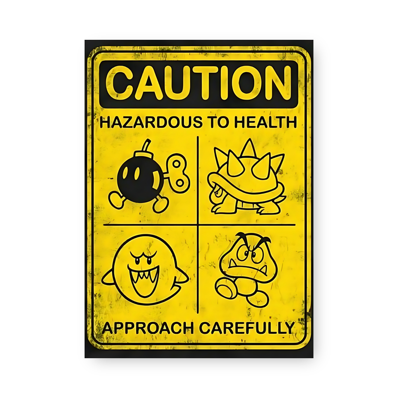 Quadro Decorativo – Super Mario Placa Aviso Personagens Mario