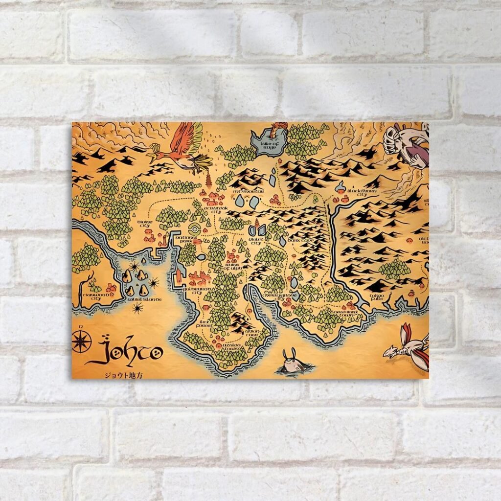 Quadro Decorativo Johto Mapa Pokemon Arte