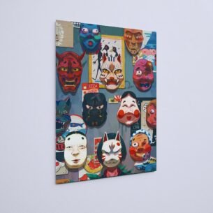 Quadro Decorativo Mascaras Japonesas Coloridas Parede
