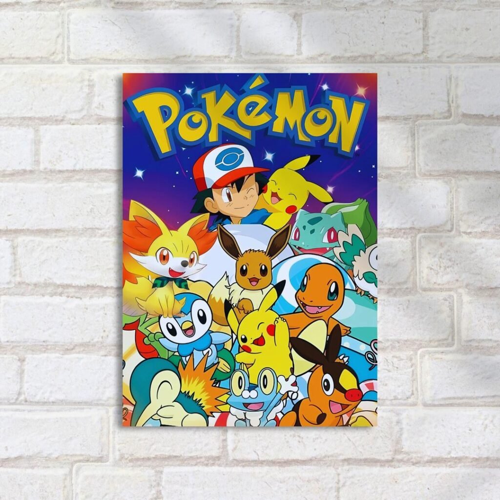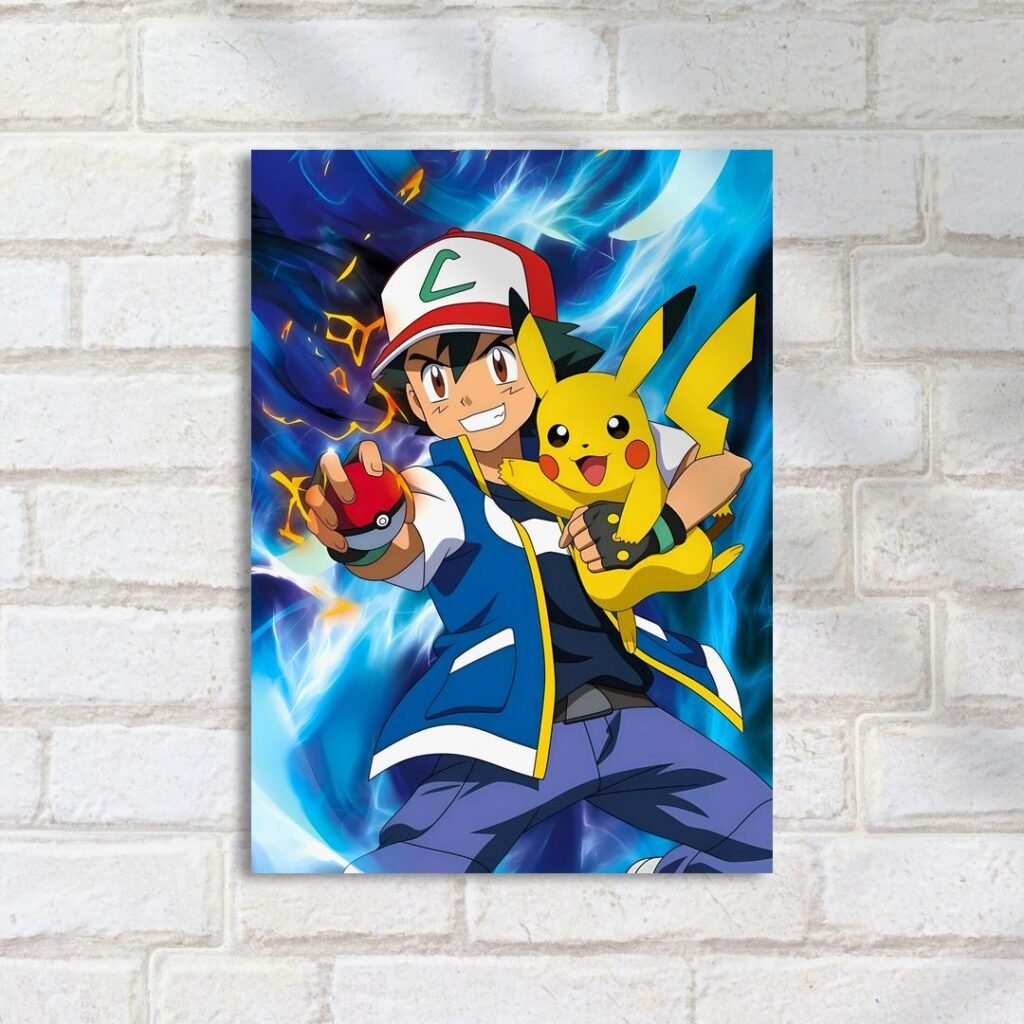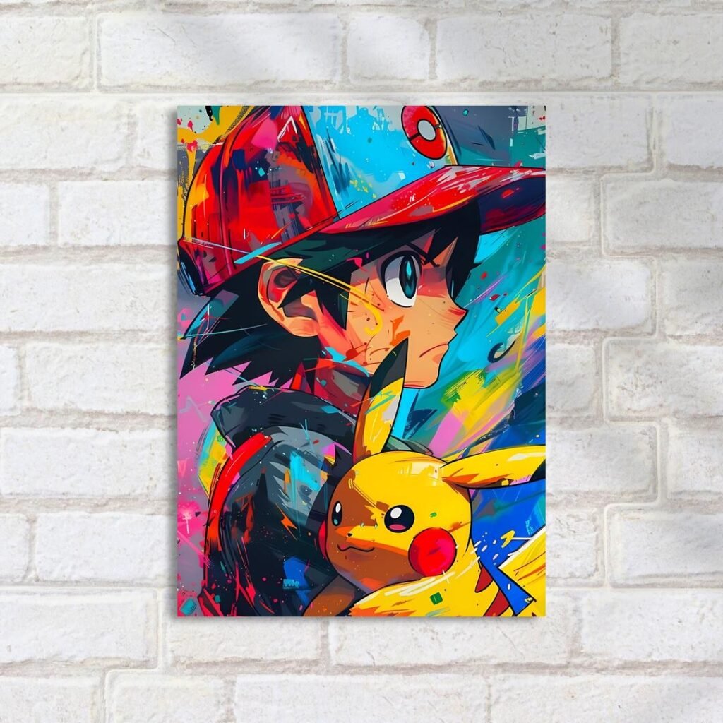 Quadro Decorativo Ash Pikachu Arte Colorida