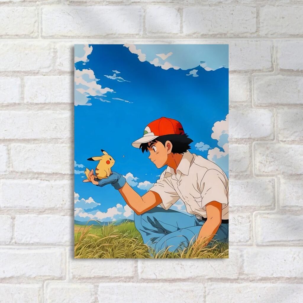 Quadro Decorativo Ash Pikachu Campo Ceu