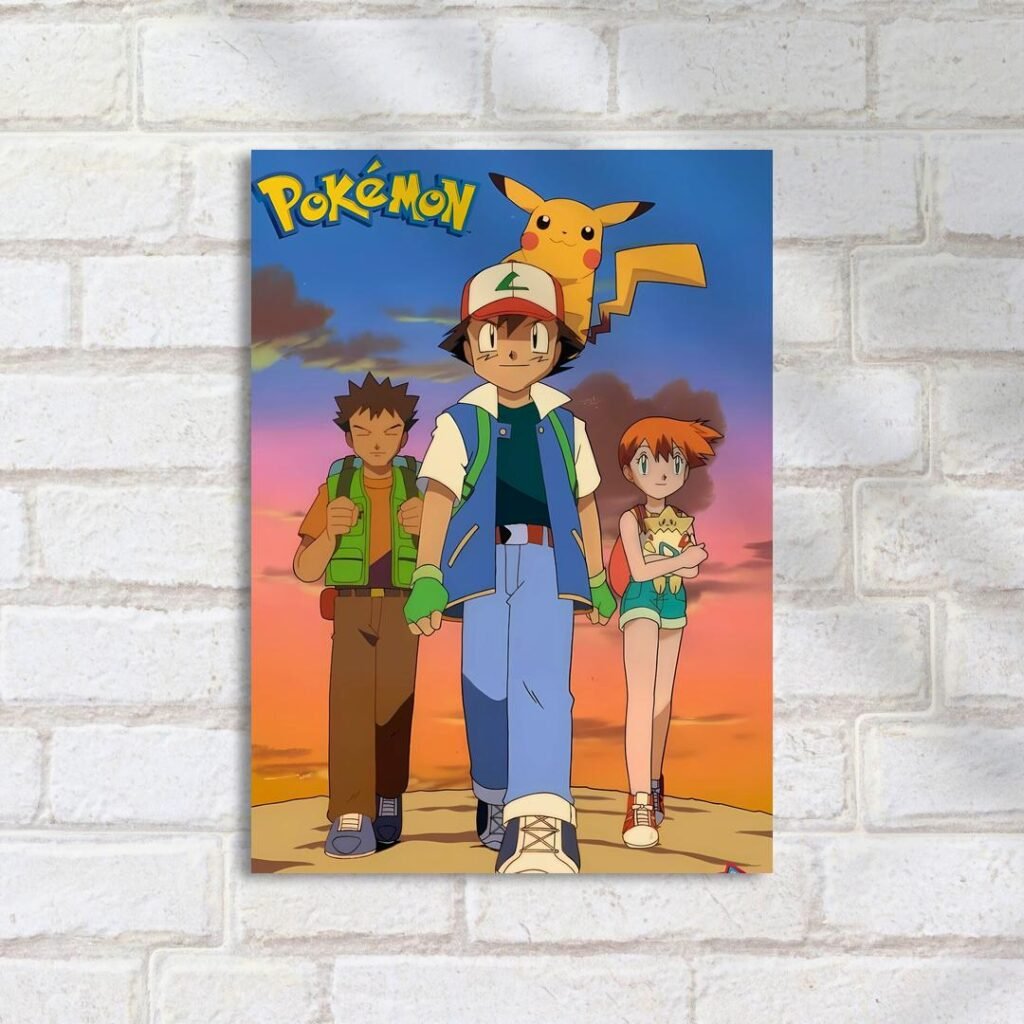 Quadro Decorativo Ash Brock Misty Pikachu