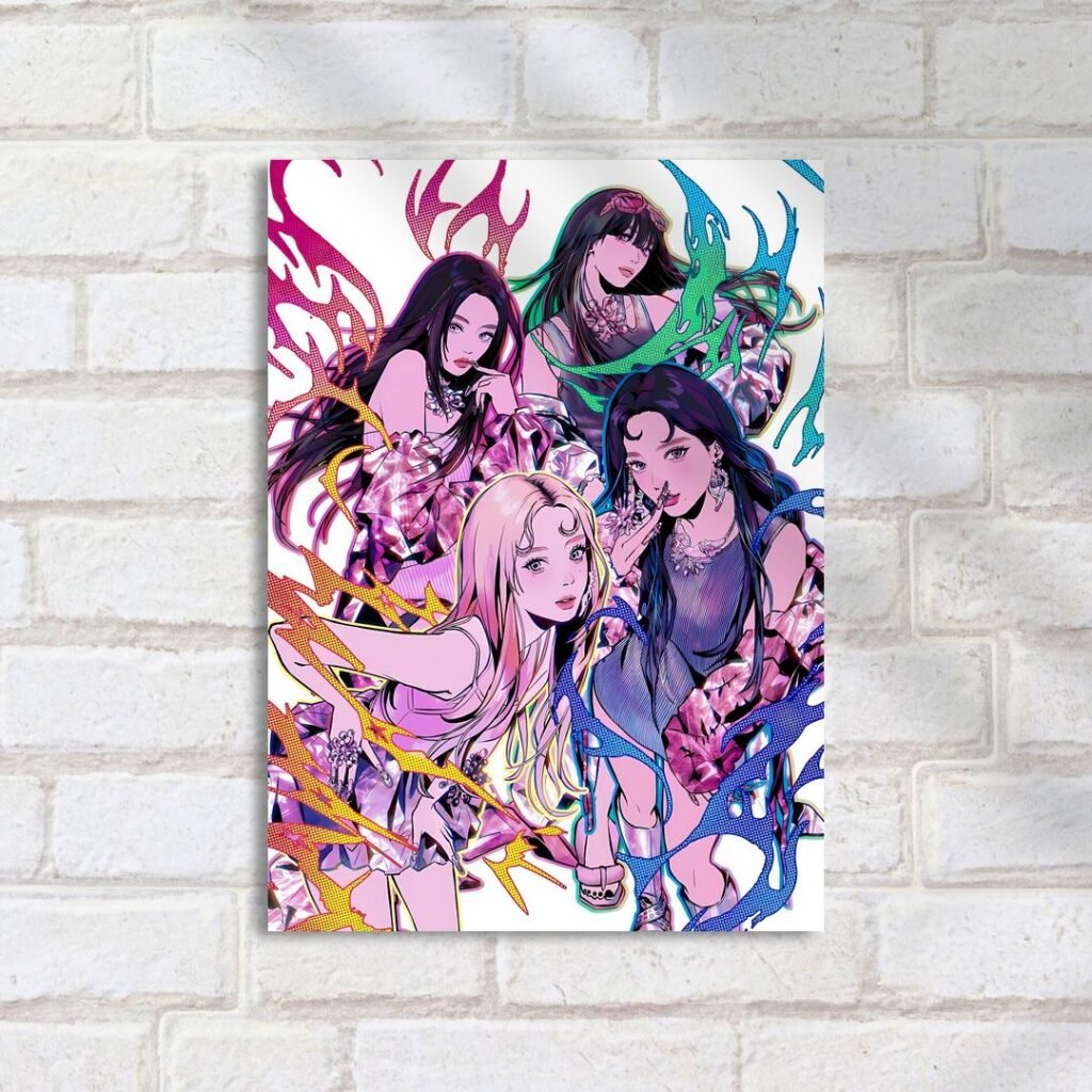 Quadro Decorativo Blackpink Ilustracao Colorida Personagens Kpop