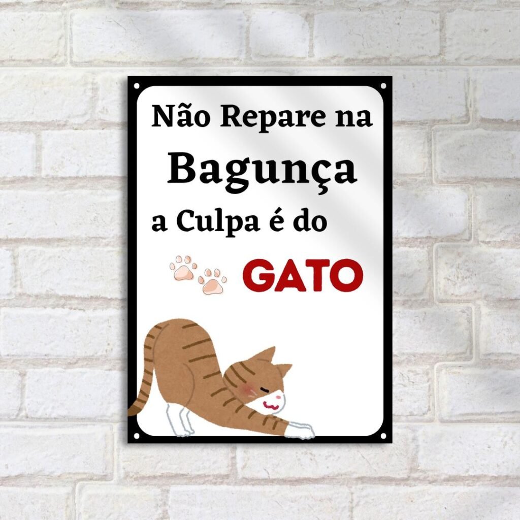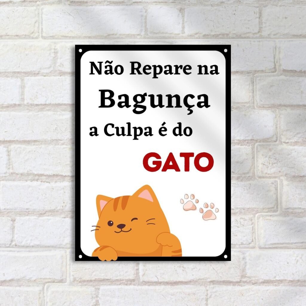 Quadro Decorativo Gato Brincalhao Bagunca Placa