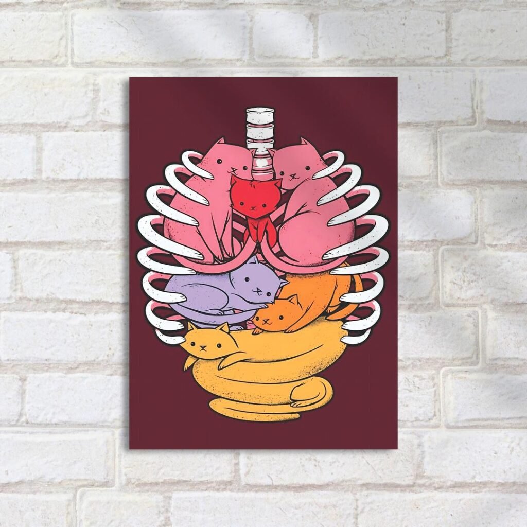 Quadro Decorativo Gatos Coloridos Costelas Esqueleto