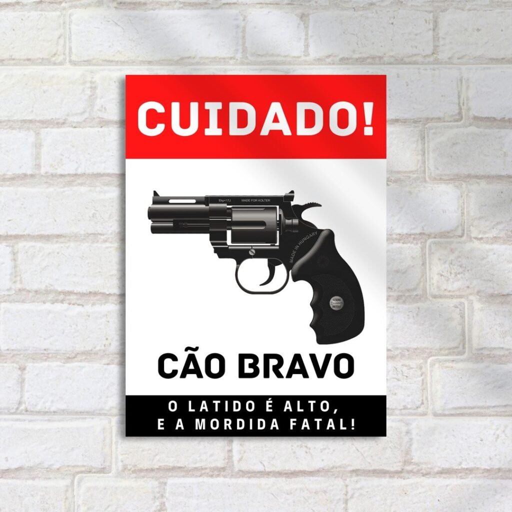 Quadro Decorativo Cuidado Cao Bravo Armado