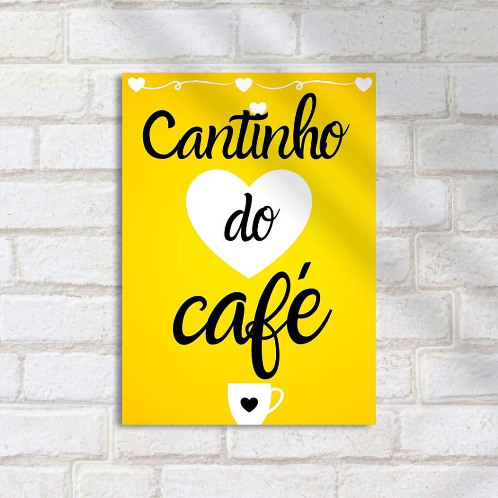 Quadro Decorativo Cantinho Cafe Amarelo Coracao