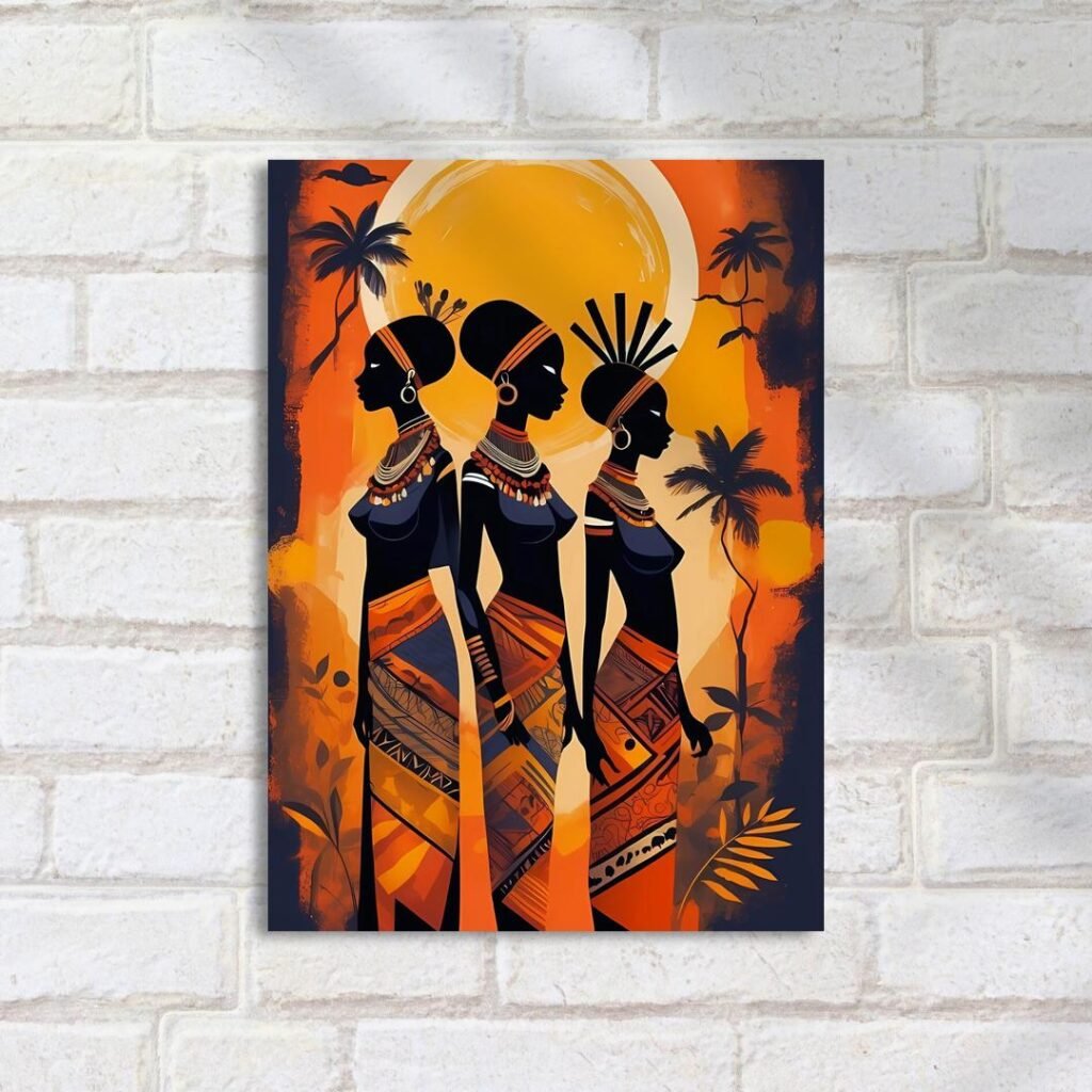 Quadro Decorativo Africanas Silhuetas Coloridas
