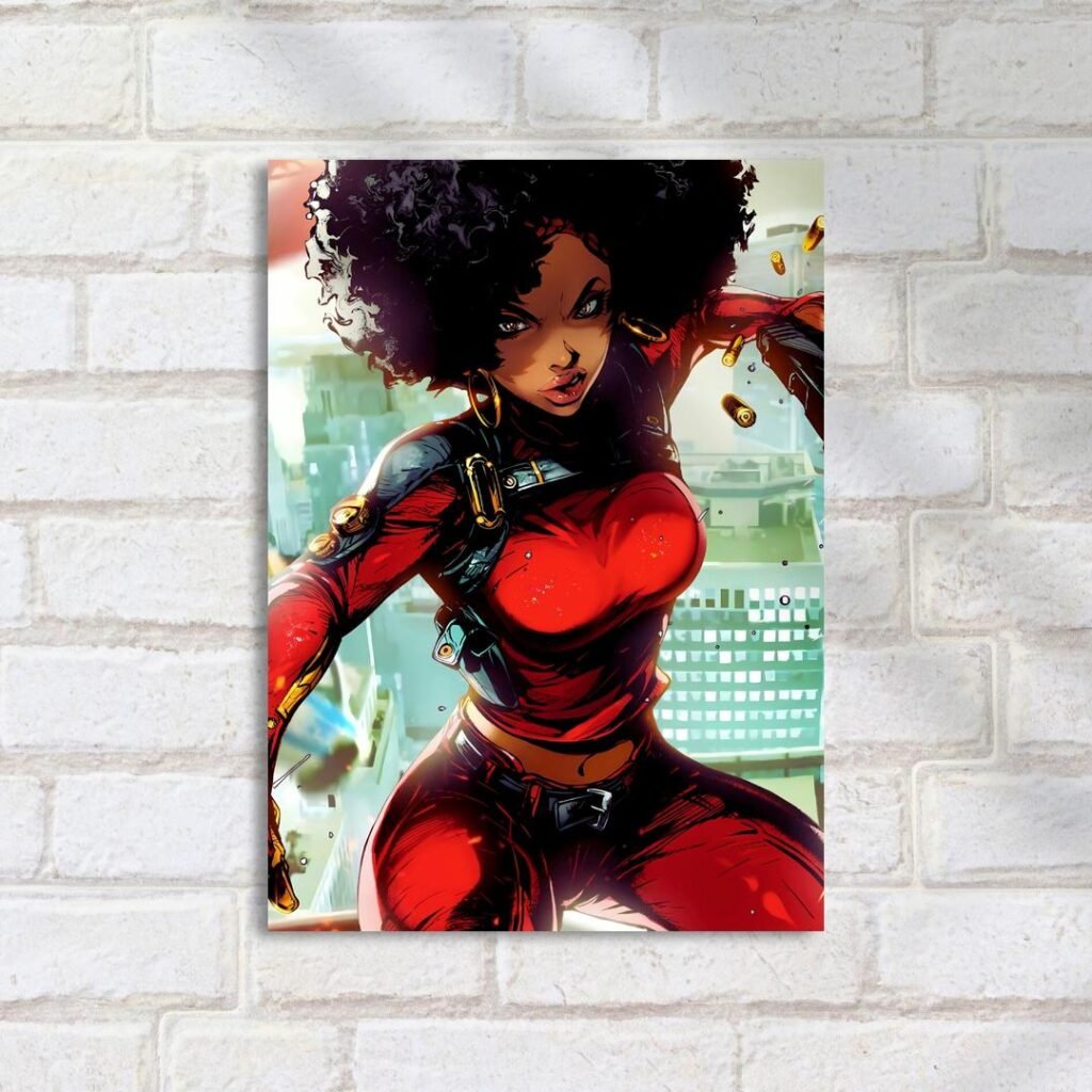 Quadro Decorativo Heroina Poder Negro Amarelo