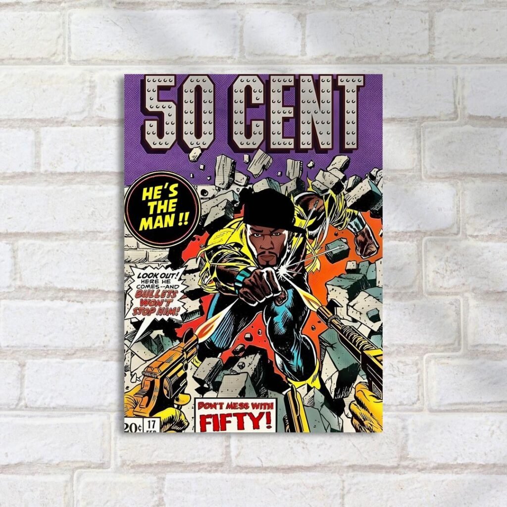 Quadro Decorativo Rap – 50 Cent Comics Superhero