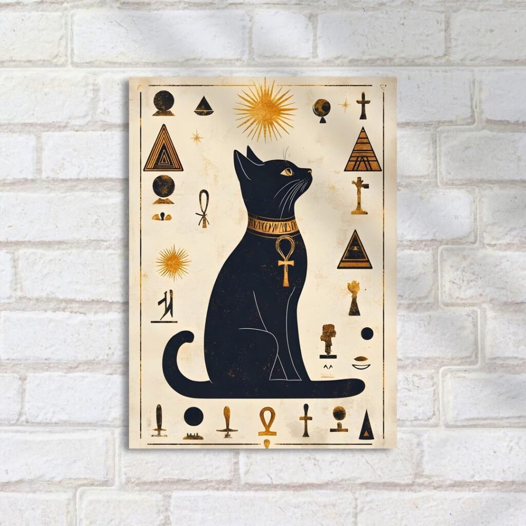 Quadro Decorativo Gato Egipcio Estilizado
