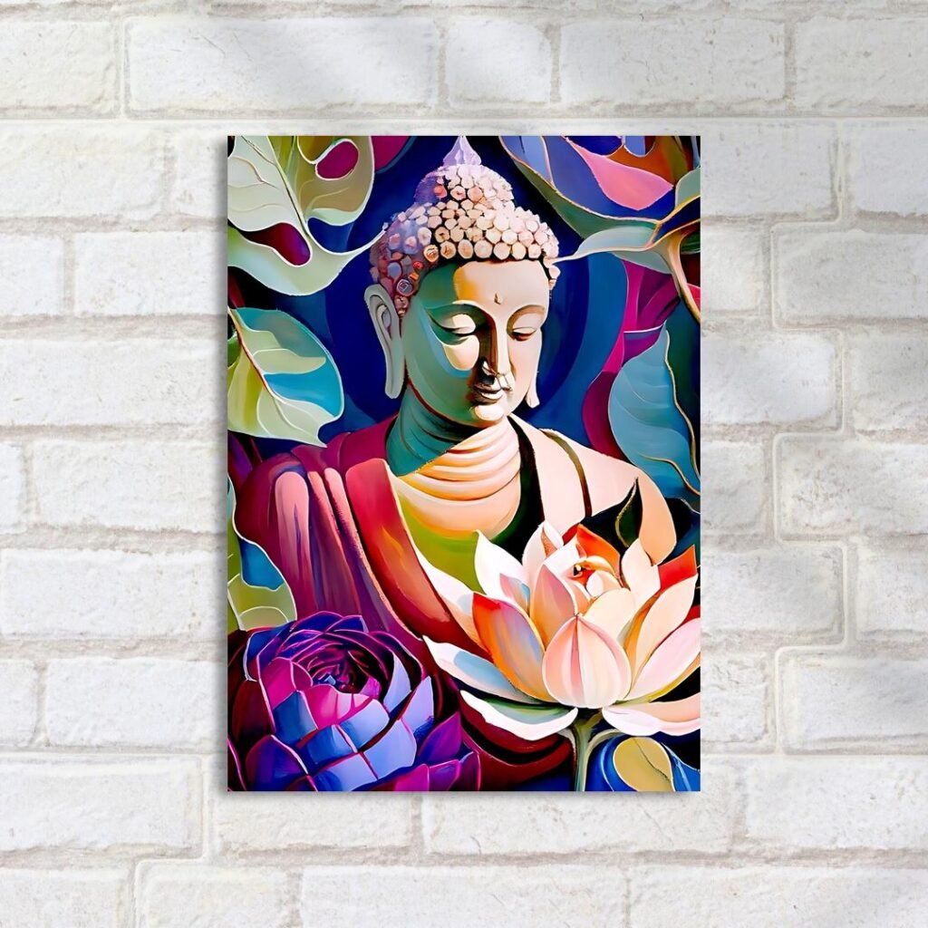 Quadro Decorativo Buda Colorido Com Flor