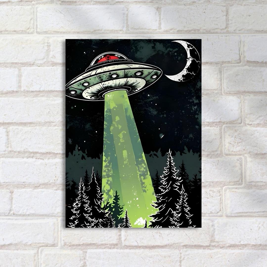 Quadro Decorativo Ovni Floresta Luz Verde