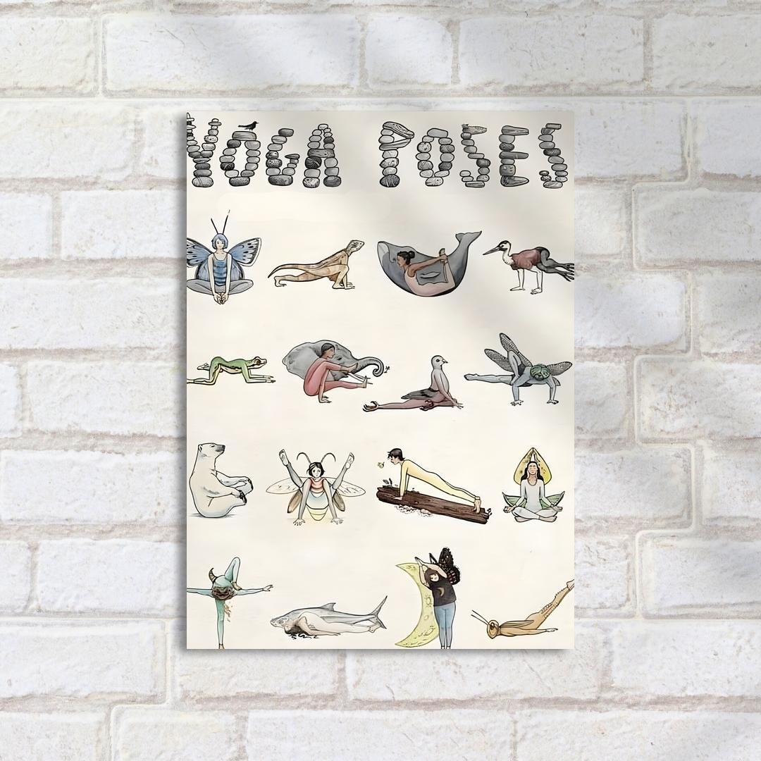 Quadro Decorativo Yoga Poses Ilustradas Animais