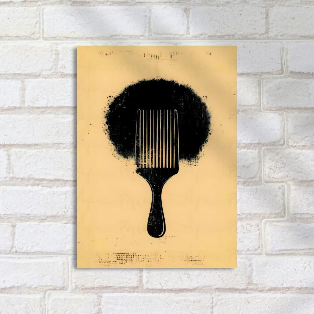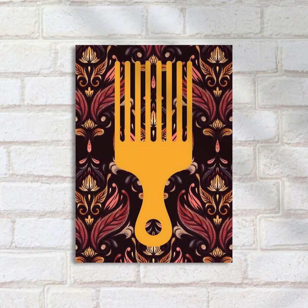 Quadro Decorativo Pente Afro Fundo Amarelo