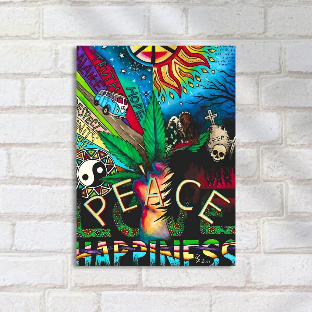 Quadro Decorativo Peace Happiness Poster Colorido