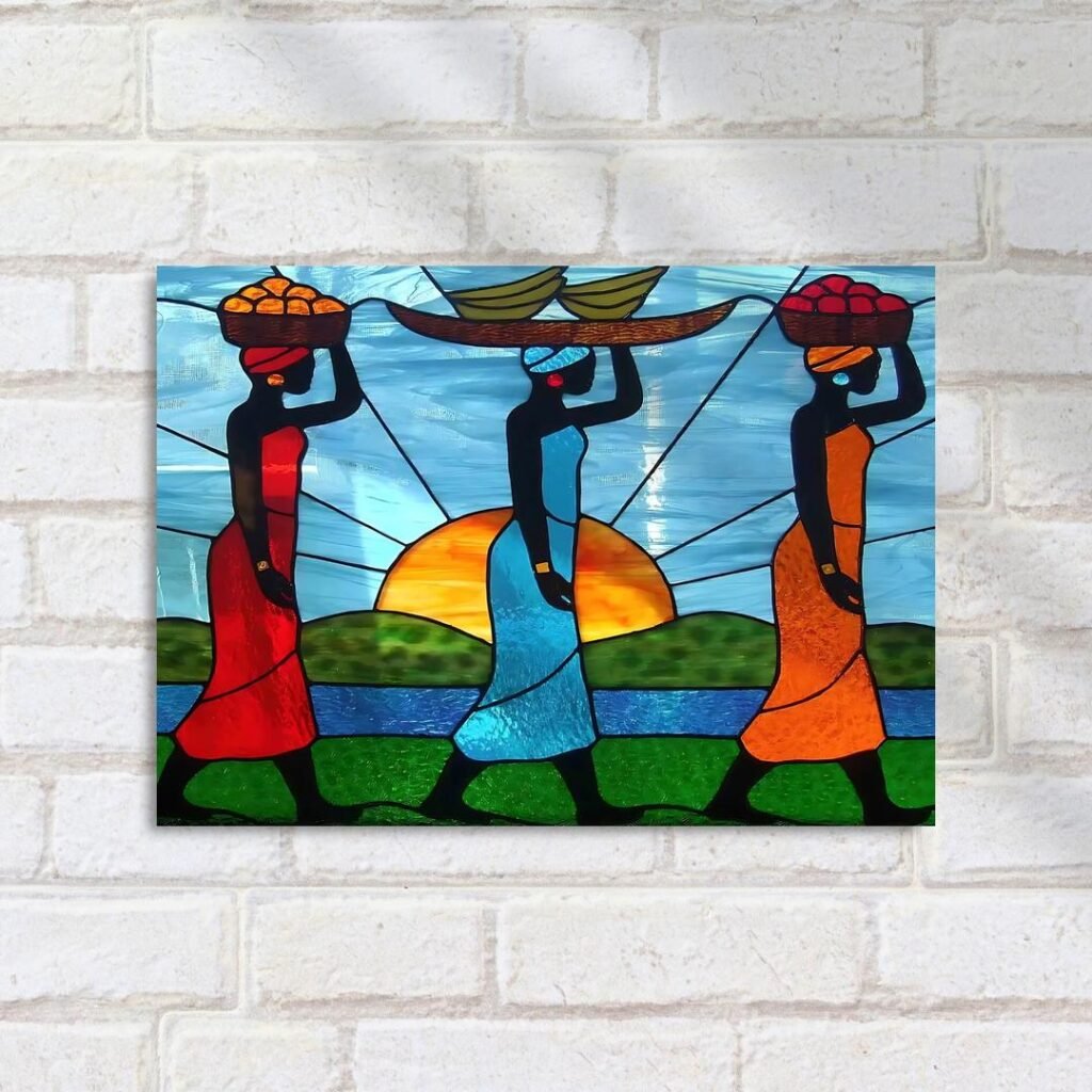 Quadro Decorativo Vitral Mulheres Com Frutas