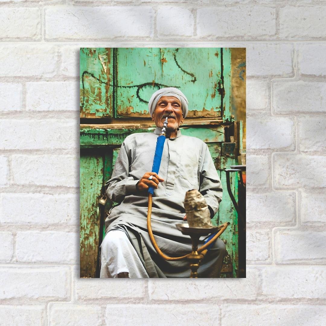 Quadro Decorativo Homem Fumando Narguile Sorrindo