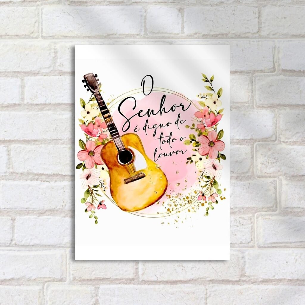 Quadro Decorativo Violao Flores Louvor Arte