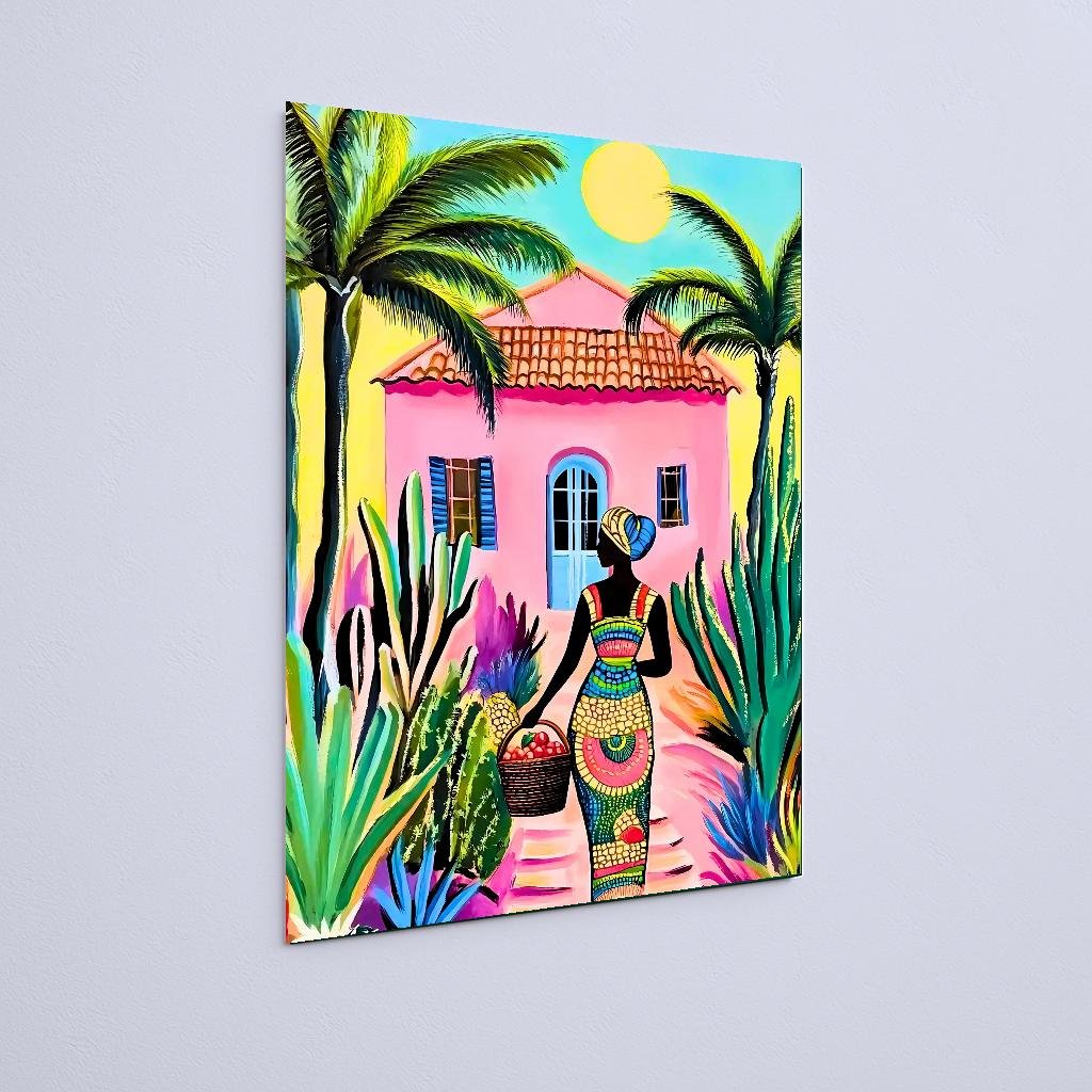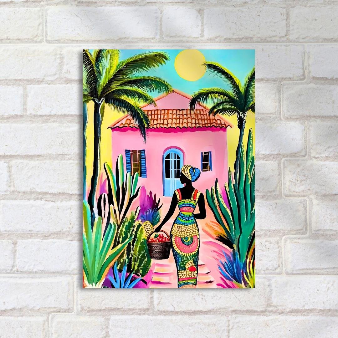 Quadro Decorativo Mulher Colorida Com Cesta