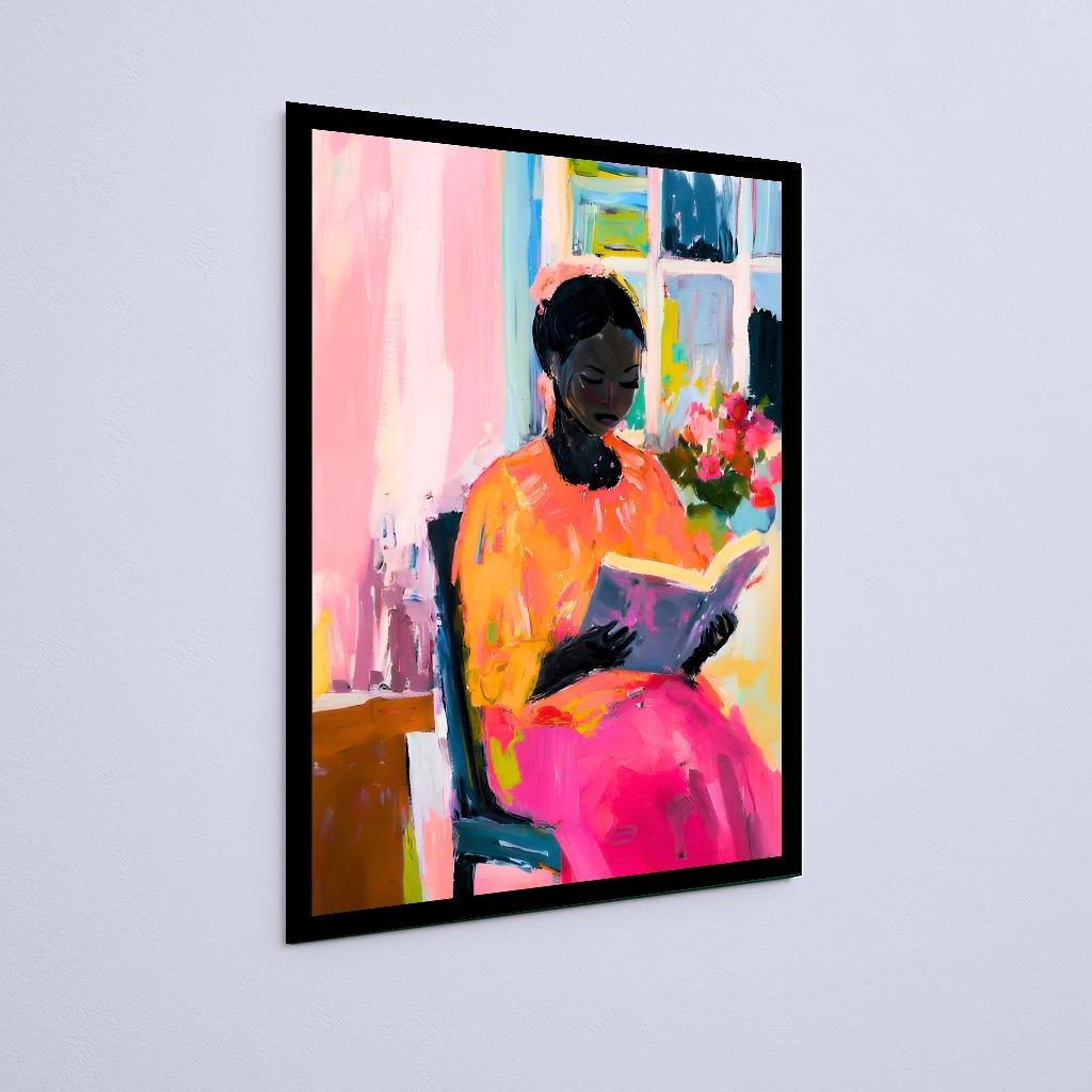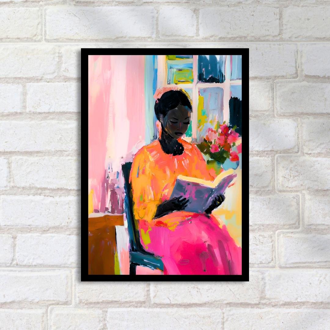 Quadro Decorativo Mulher Lendo Cores Vibrantes