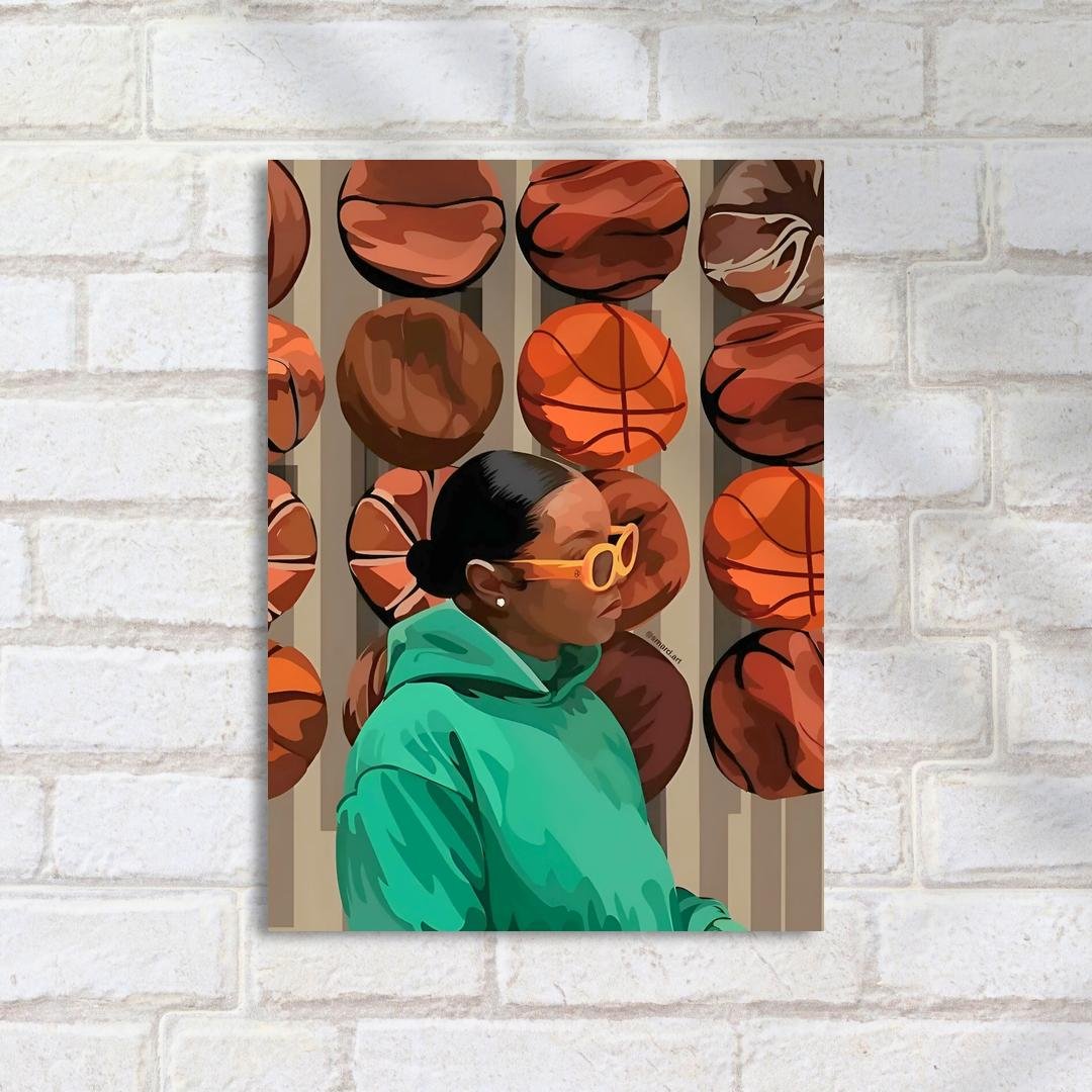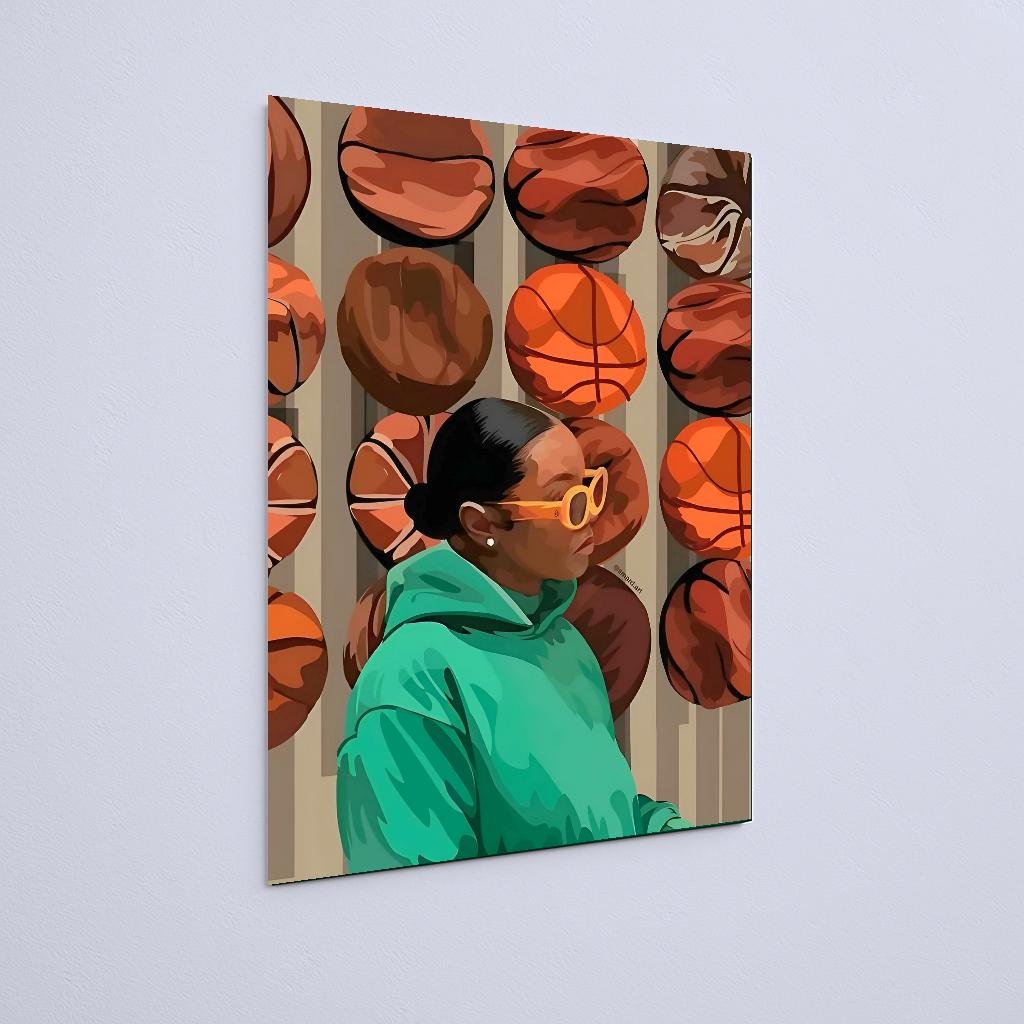 Quadro Decorativo Mulher Moletom Bolas Basquete