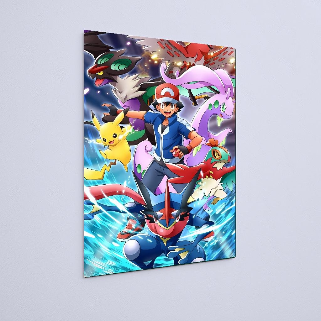 Quadro Decorativo Ash Pikachu Froakie Pokemon