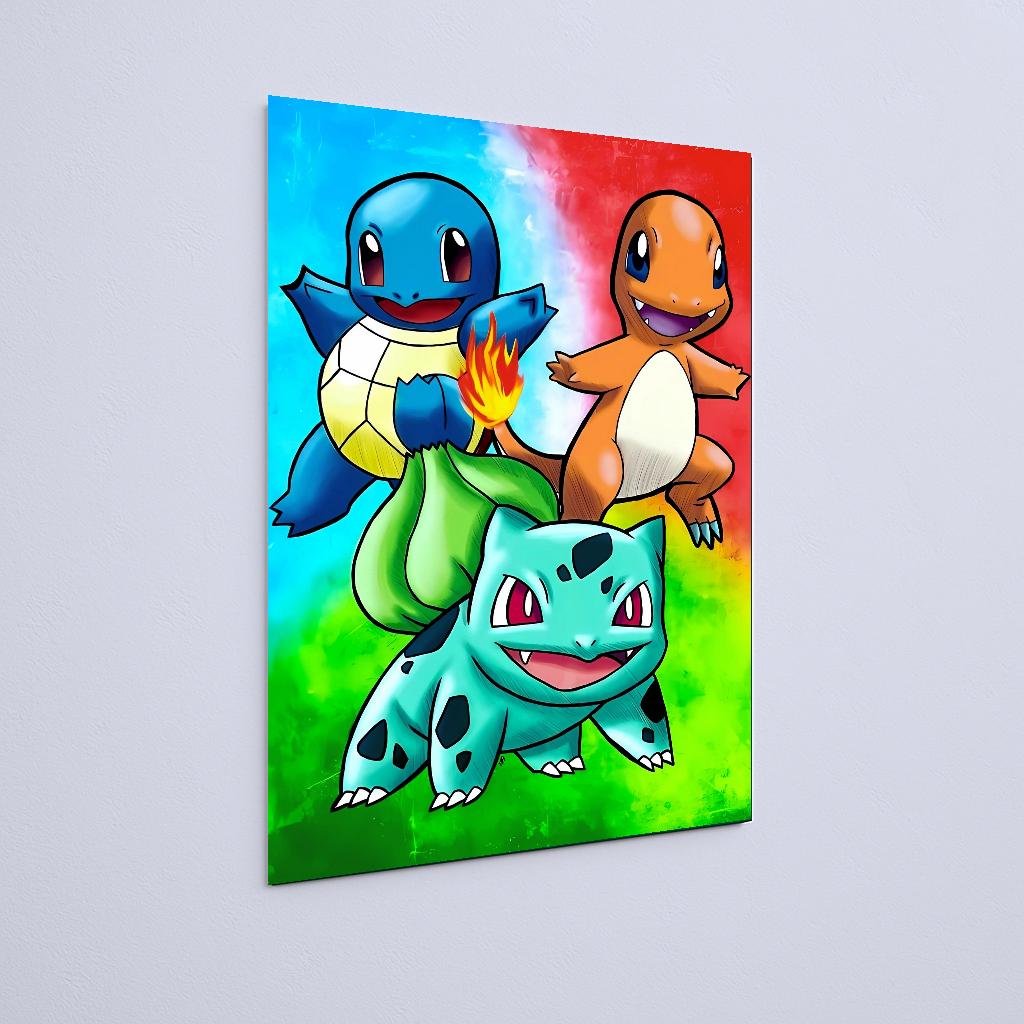 Quadro Decorativo Bulbasaur Charmander Squirtle Pokemon