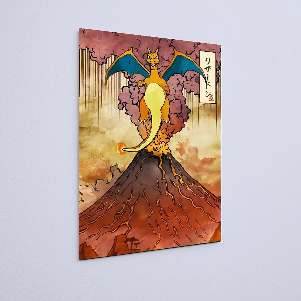 Quadro Decorativo Charizard Volcao Erupcao