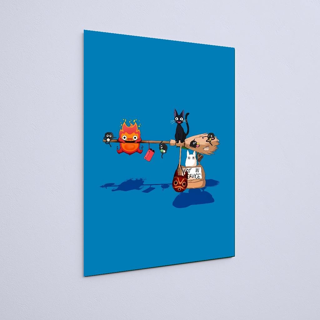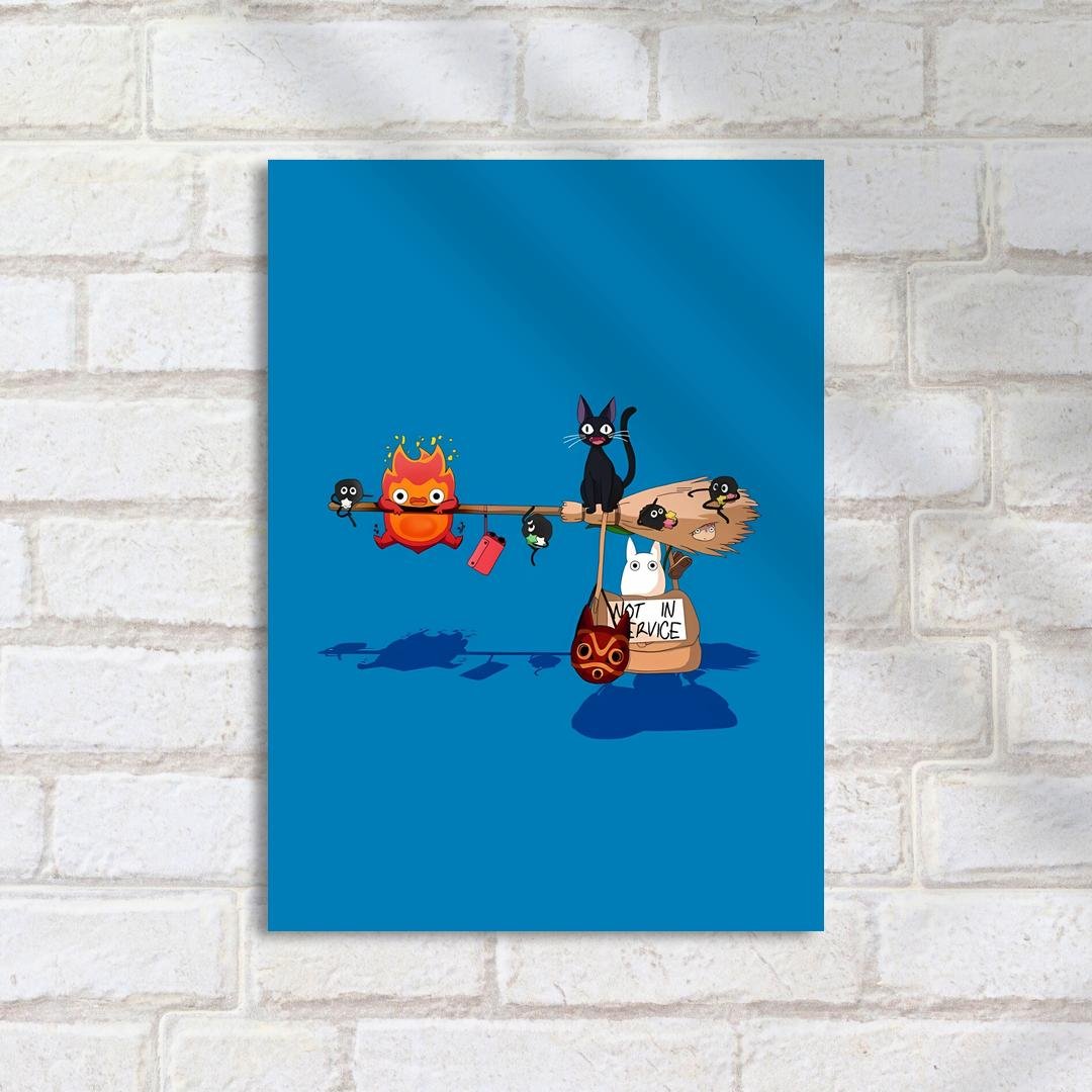 Quadro Decorativo Gato Bastao Totoro Azul